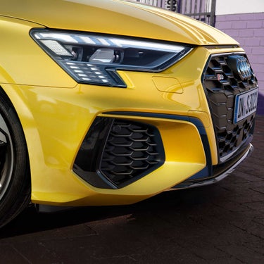 The carbon style package underlines the sporty character of the Audi S3 Sportback with high-quality components made of carbon-fibre-reinforced polymer (carbon). This material is noted for its even geometrical and visible fibre structure. The exterior mirror housings and the air-flow roof edge spoiler in carbon add dynamic accents and provide an expressive contrast to the vehicle paint finish.